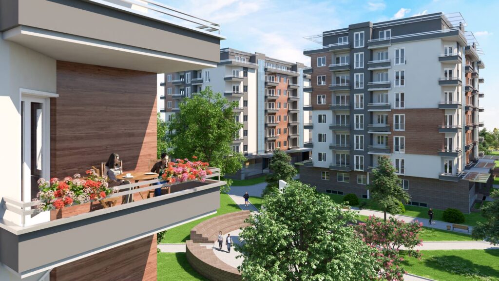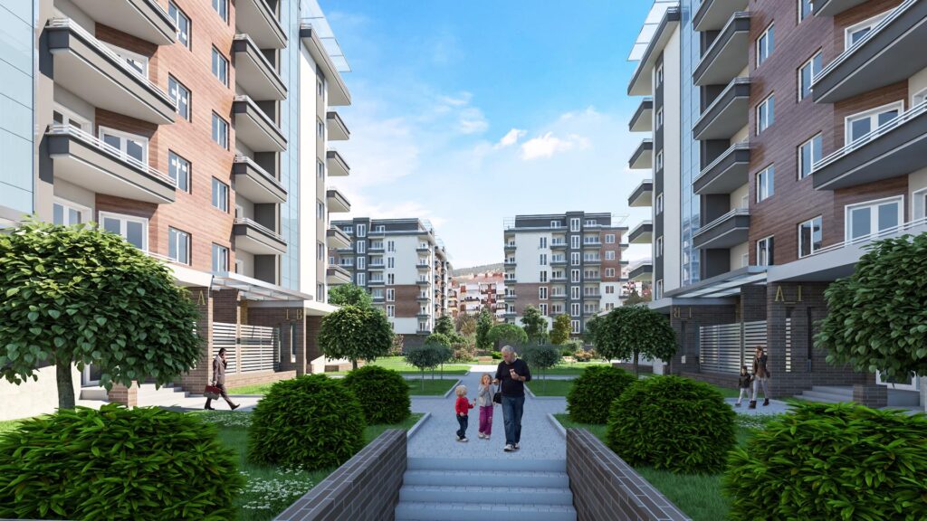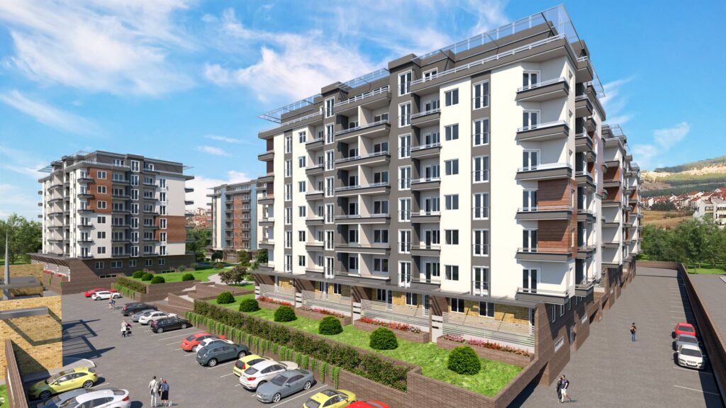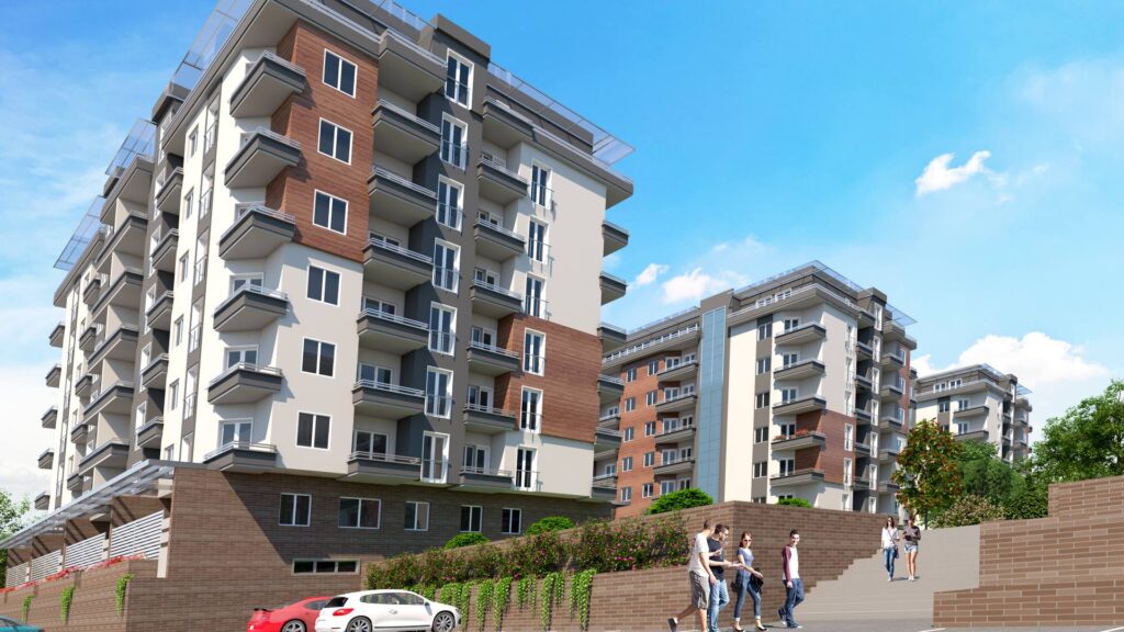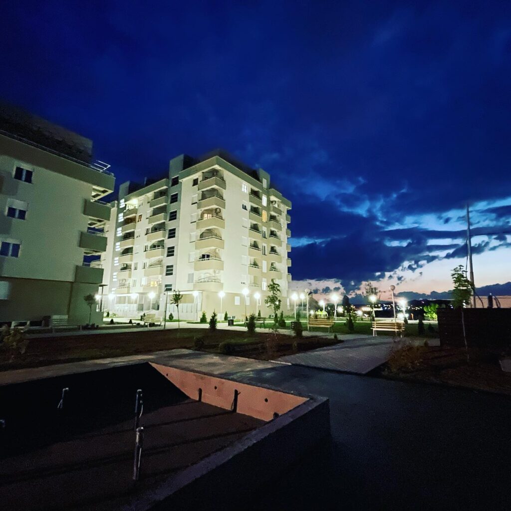 The complex Green Garden, consisting of six seven-storey buildings, with its modern architecture is the first and only of this type of housing in Stip and its surroundings. Its uniqueness is due primarily to the unique concept and layout, high quality of construction in every aspect, excellent location, surrounding solidly developed infrastructure, 100% secured parking lots, as well as colorful parks, green areas and common facilities for tenants within the complex.